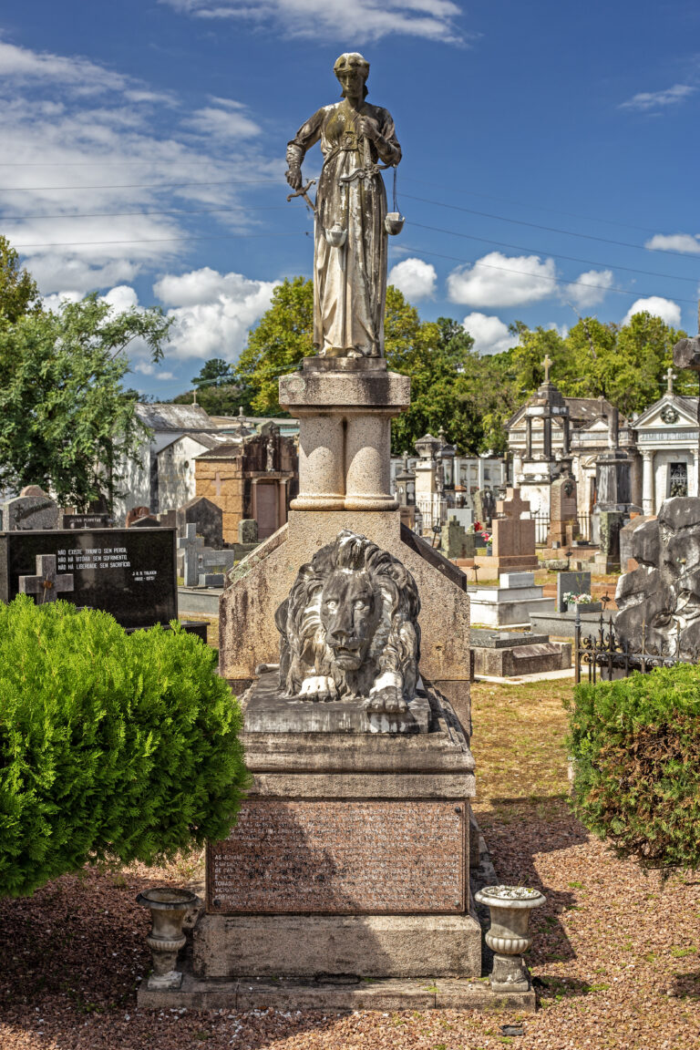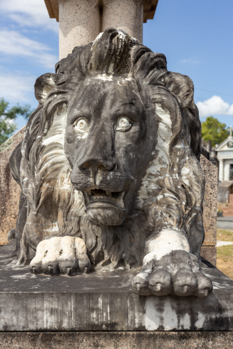 O leão é recorrente na arte tumular por simbolizar a coragem, a força e a bravura. O túmulo é projeto do arquiteto Theo Wiederspahn (1878-1952).
